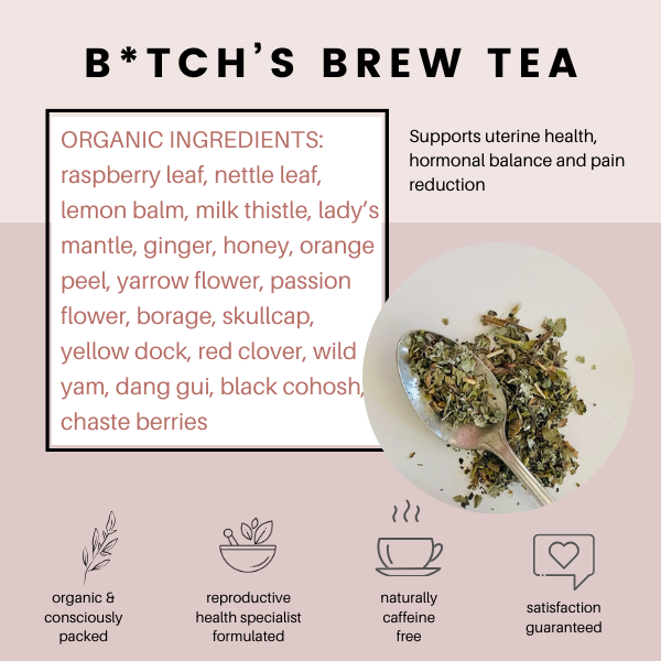 Whether you have PCOS, bad PMS, PMDD, endometriosis, fibroids, blocked tubes, high FSH or adenomyosis, B*tch's Brew Tea is a great first step in balancing your body and supporting your womb... without the risk of the side effects common with pharmaceuticals and pain meds.